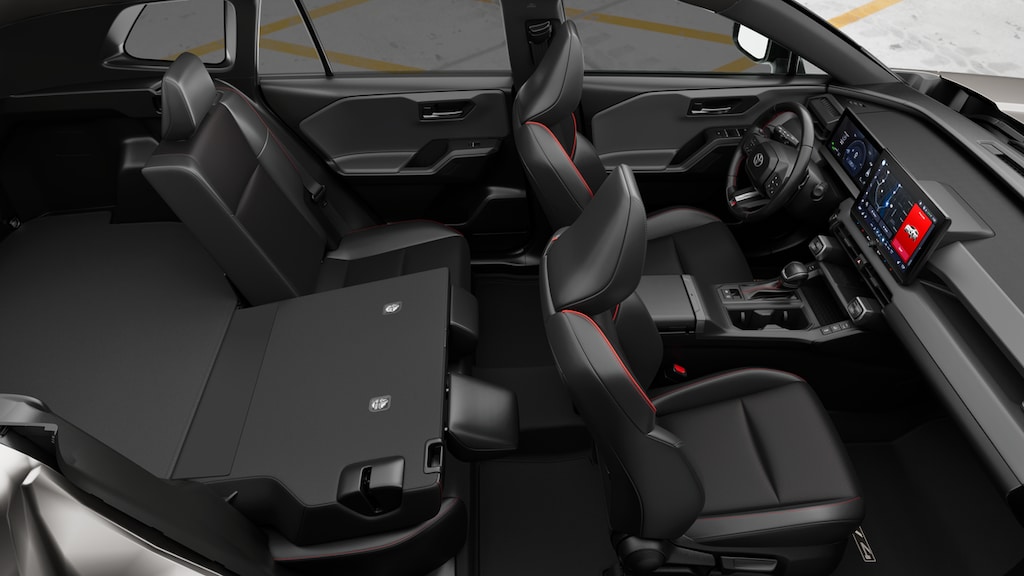 - 60/40 split reclining fold-flat rear seat with center armrest and cup holders.