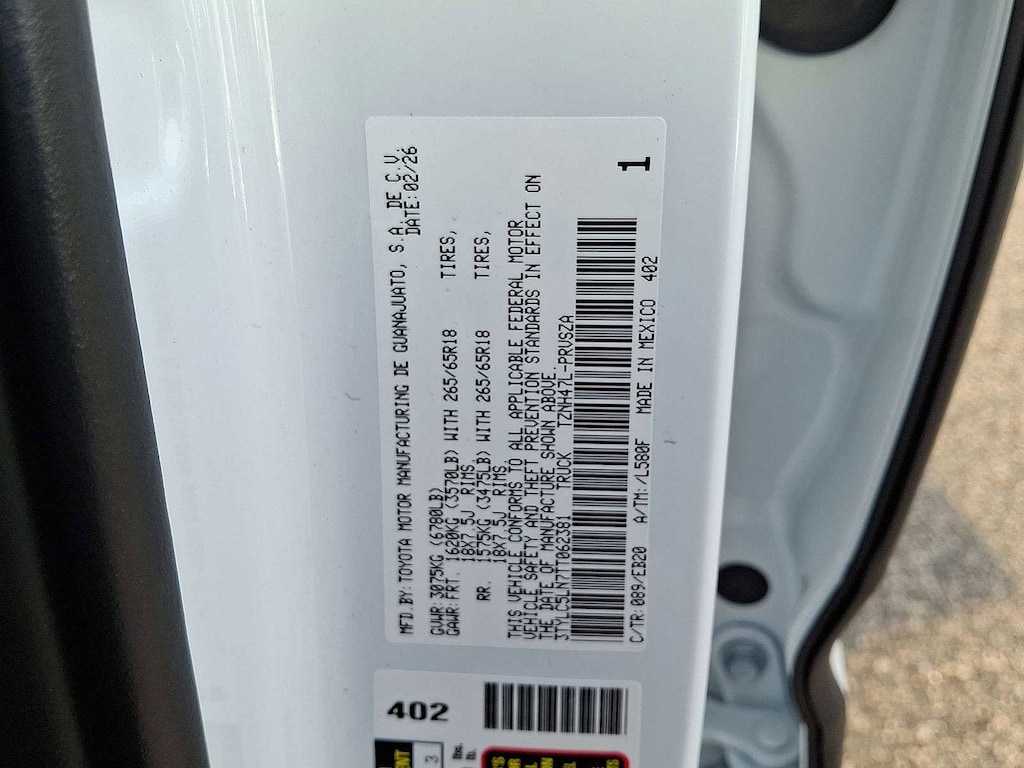 0089white 2026 Toyota Tacoma Hybrid Limited 4WD 8-Speed Automatic 2.4L 4-Cylinder 2.4L 4-Cylinder.