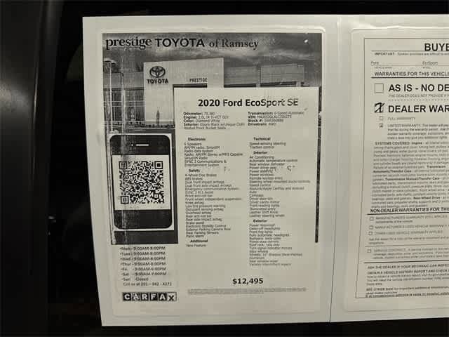 This 2020 Ford EcoSport SE will not make it to the weekend!! CALL NOW to reserve your test drive!! (844) 838-7075 Please Visit www.PrestigeToyota.com for further details. Price does not include licensing costs, registration fees, taxes and dealer doc fee of $999 which are to be paid by the consumer.