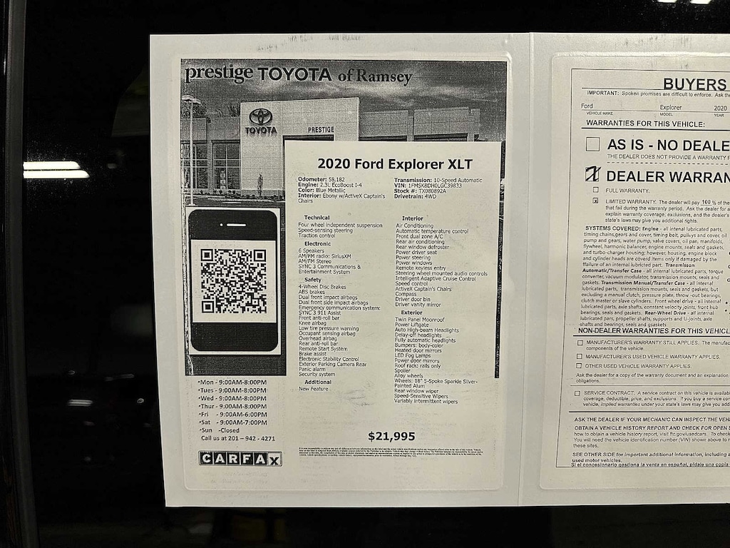 This 2020 Ford Explorer XLT will not make it to the weekend!! CALL NOW to reserve your test drive!! (844) 838-7075 Please Visit www.PrestigeToyota.com for further details. Price does not include licensing costs, registration fees, taxes and dealer doc fee of $999 which are to be paid by the consumer.