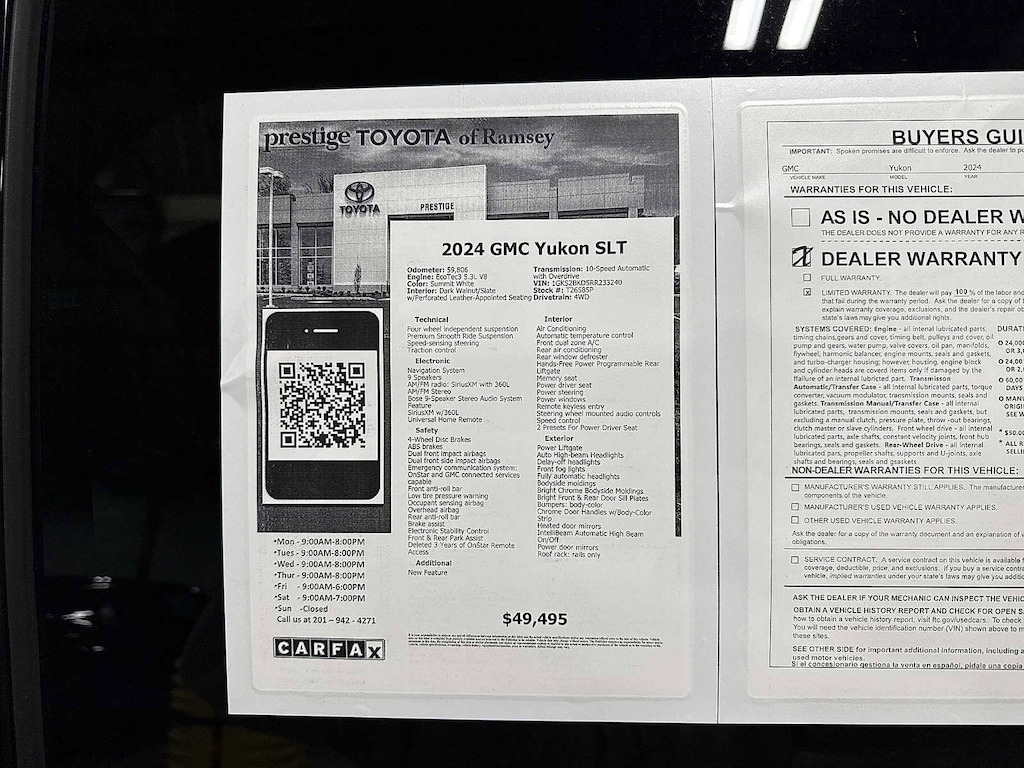 This 2024 GMC Yukon SLT will not make it to the weekend!! CALL NOW to reserve your test drive!! (844) 838-7075 Please Visit www.PrestigeToyota.com for further details. Price does not include licensing costs, registration fees, taxes and dealer doc fee of $999 which are to be paid by the consumer.