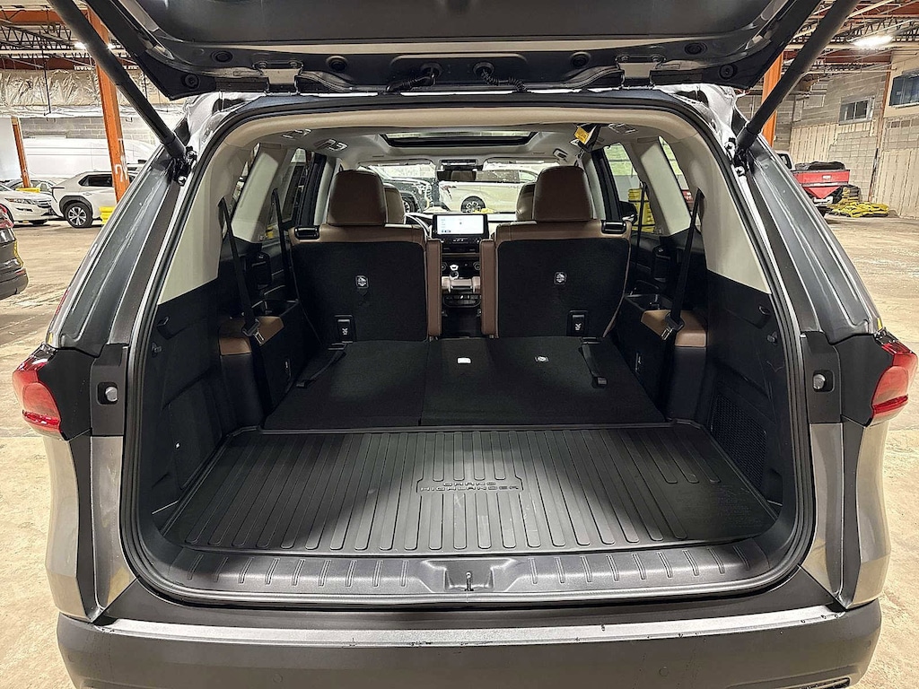 - 7-passenger seating with second-row fold-down captain's chairs and fold-down inboard armrests, adjustable headrests and two cup holders mounted on the floor; and 60/40 split, fold-down third-row seats with sliding headrests and recline function.
